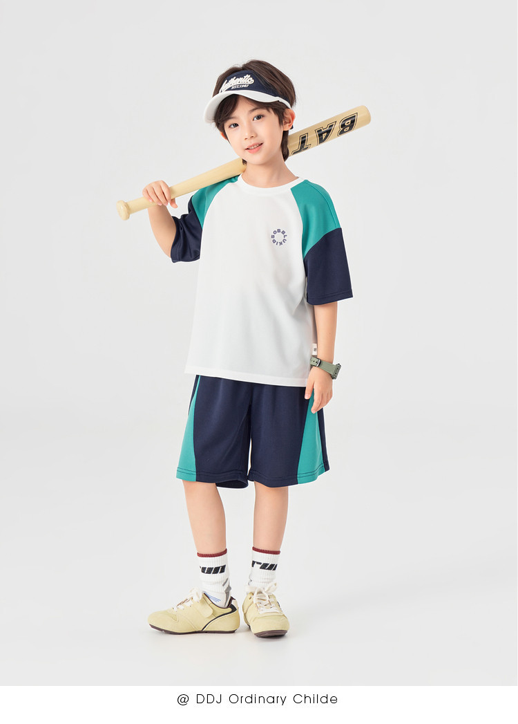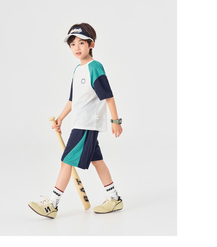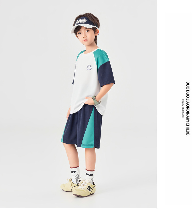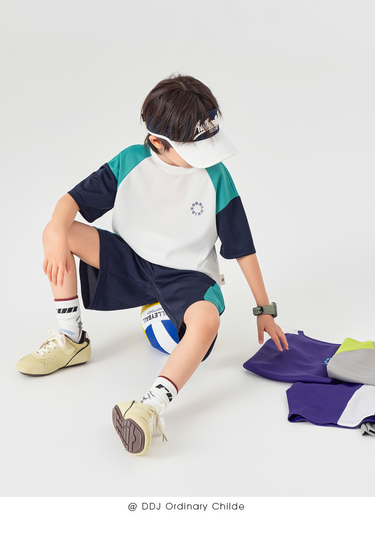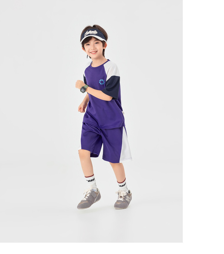男童撞色運通彈力網眼兩件套