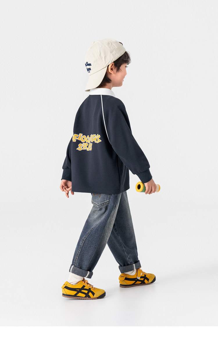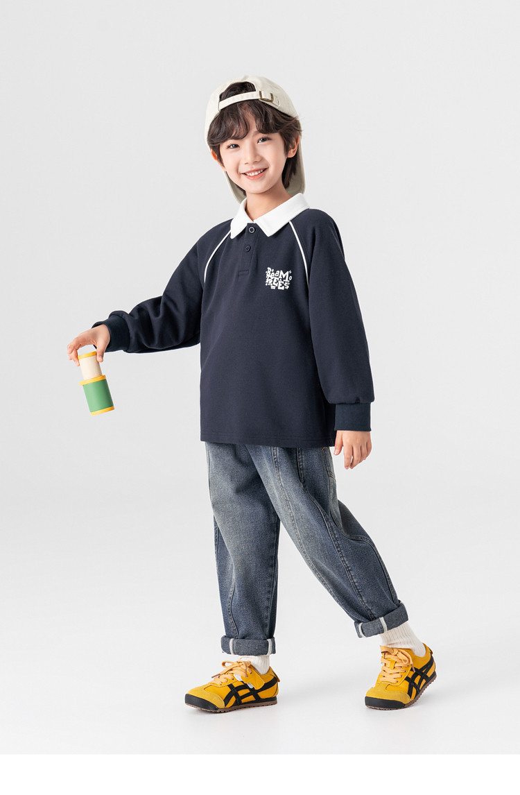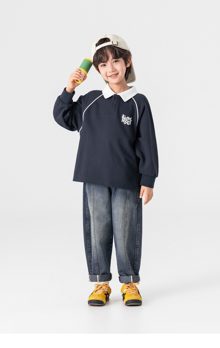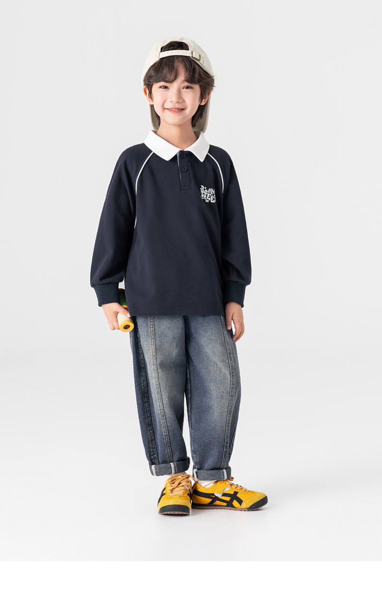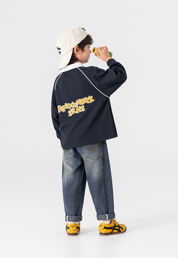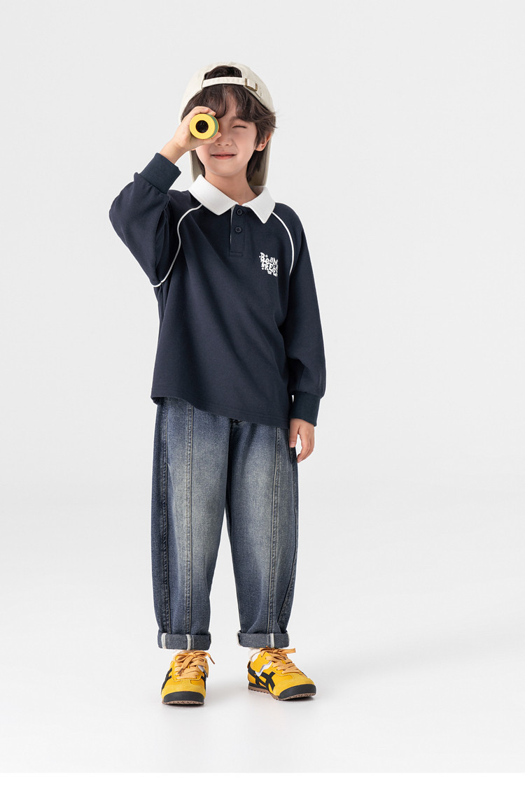 男童春秋款分割刺繡百搭牛仔褲