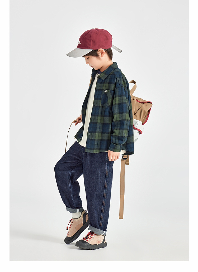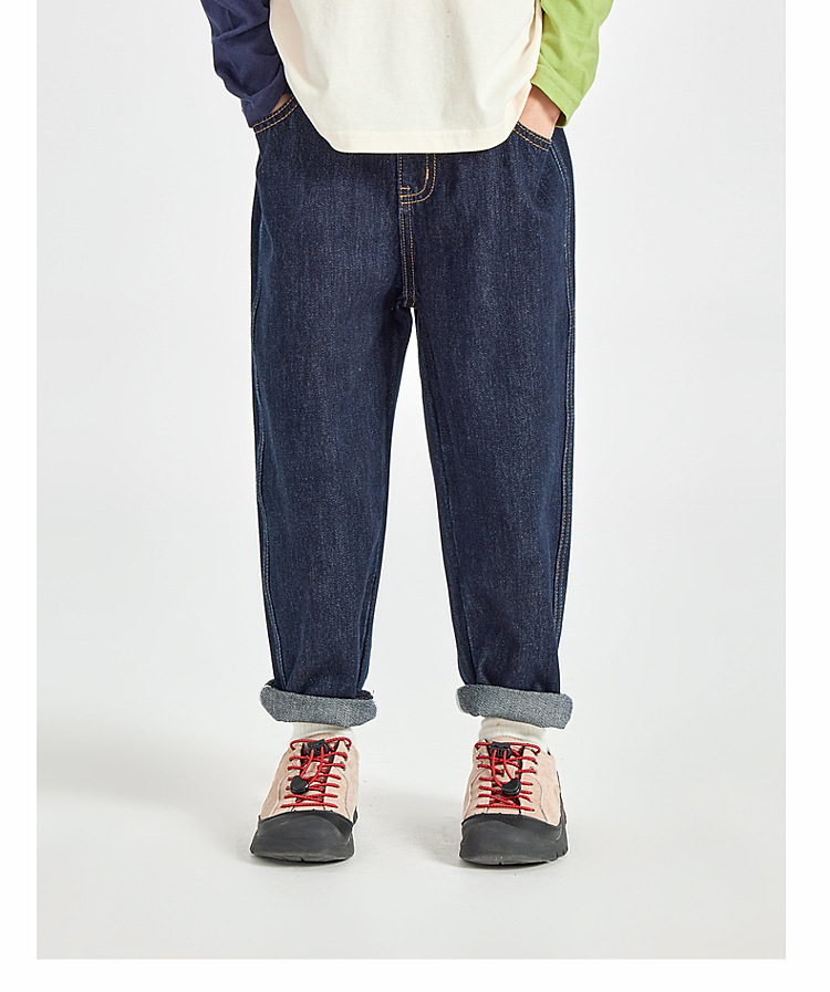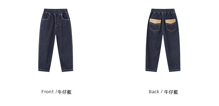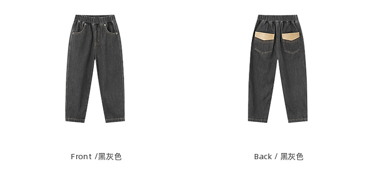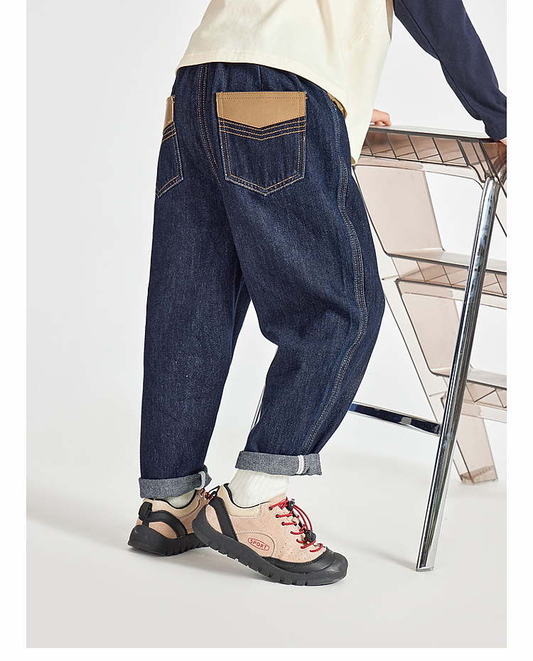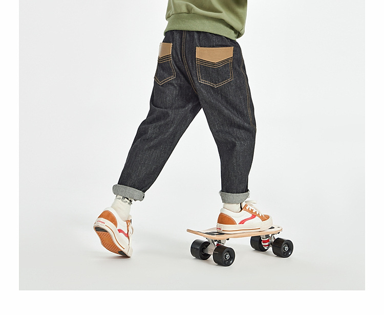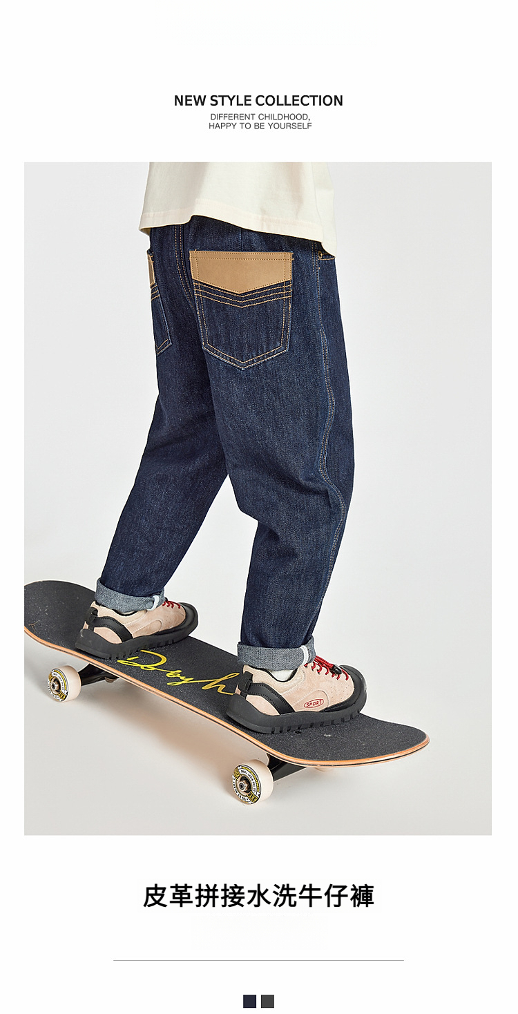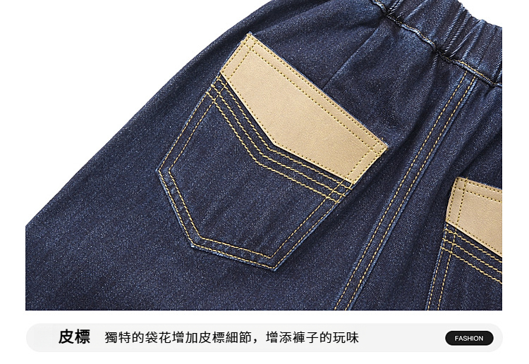 男童皮革拼接水洗牛仔褲
