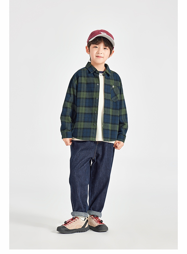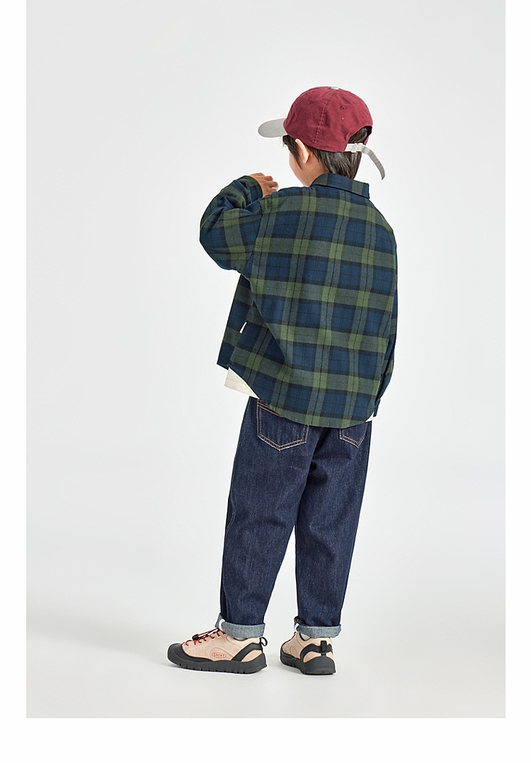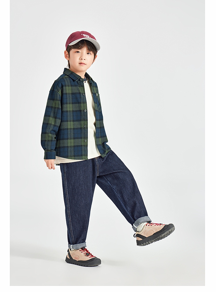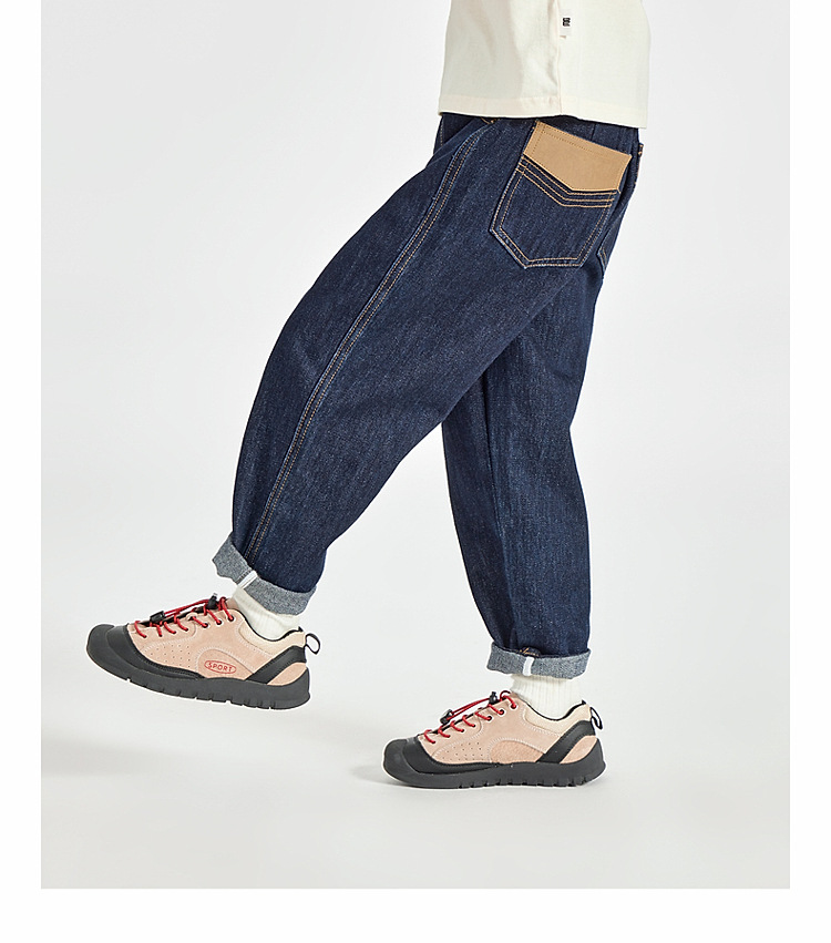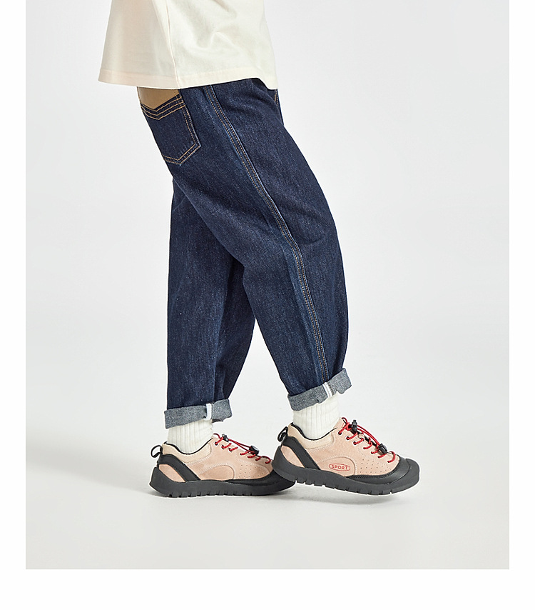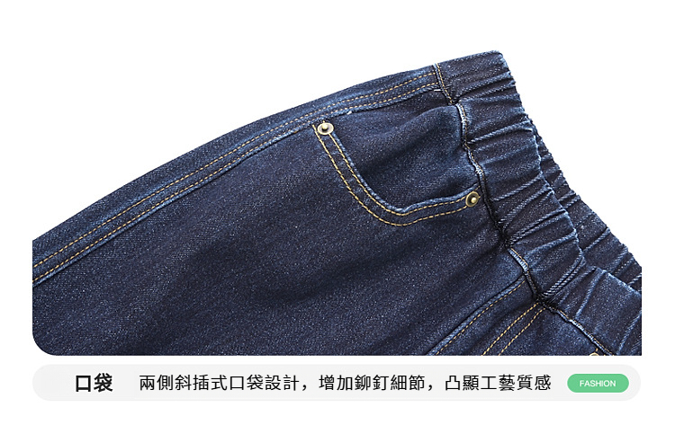 男童皮革拼接水洗牛仔褲