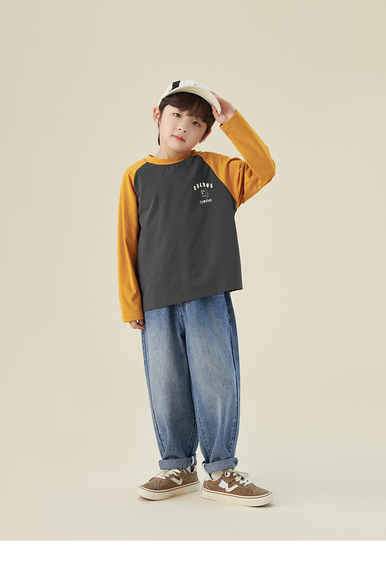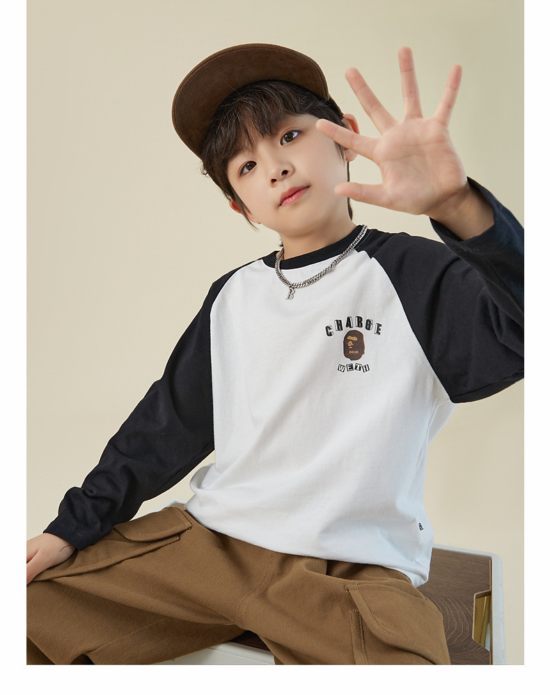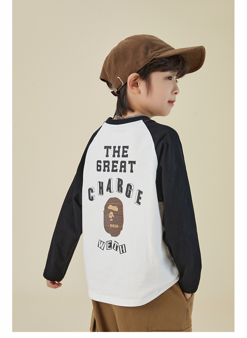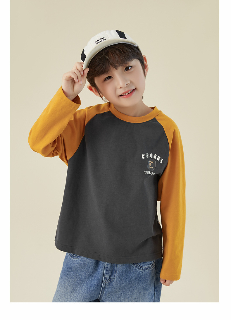 男童純棉插肩袖印花長袖T恤