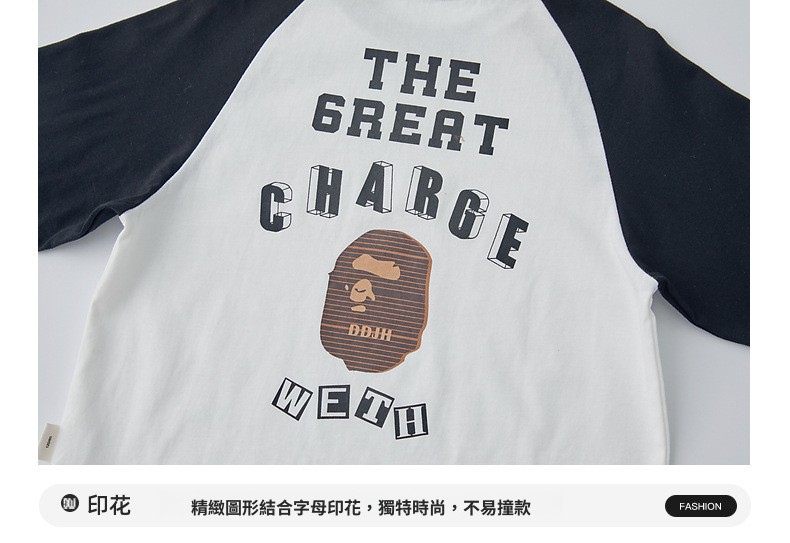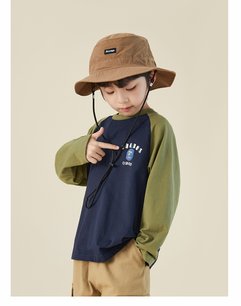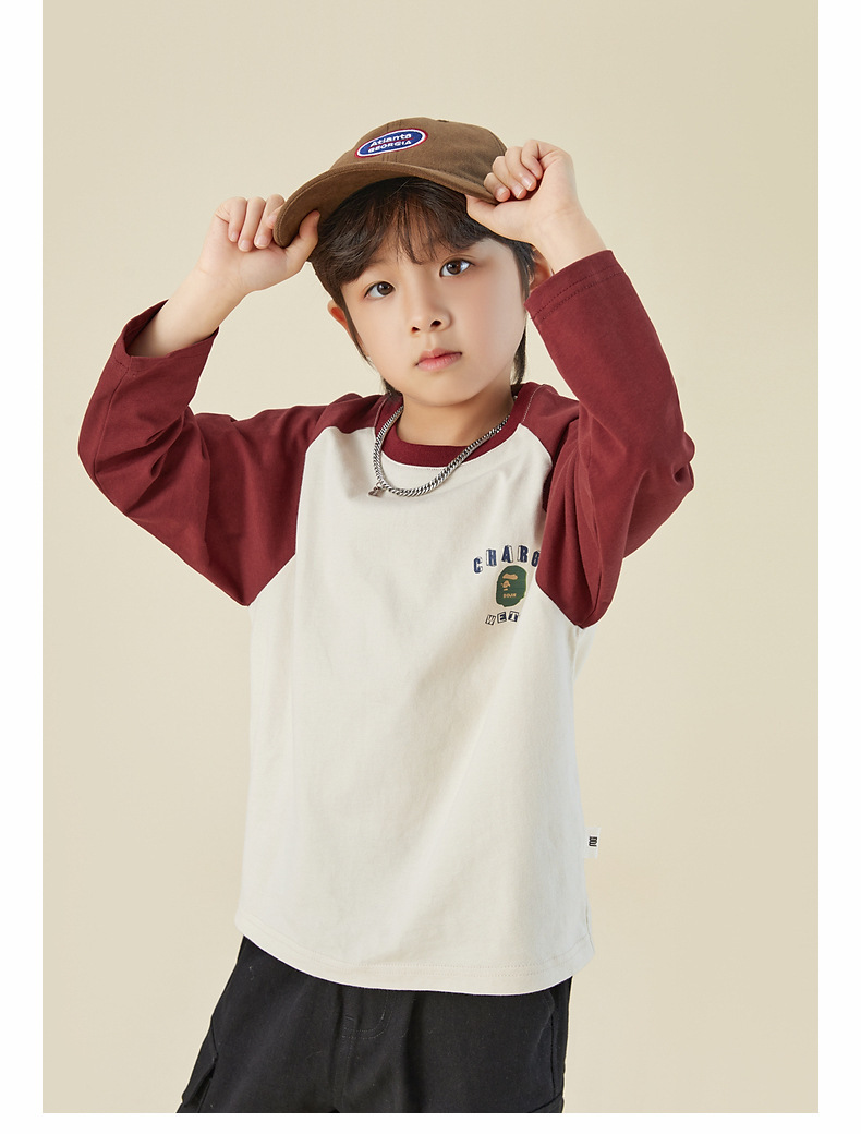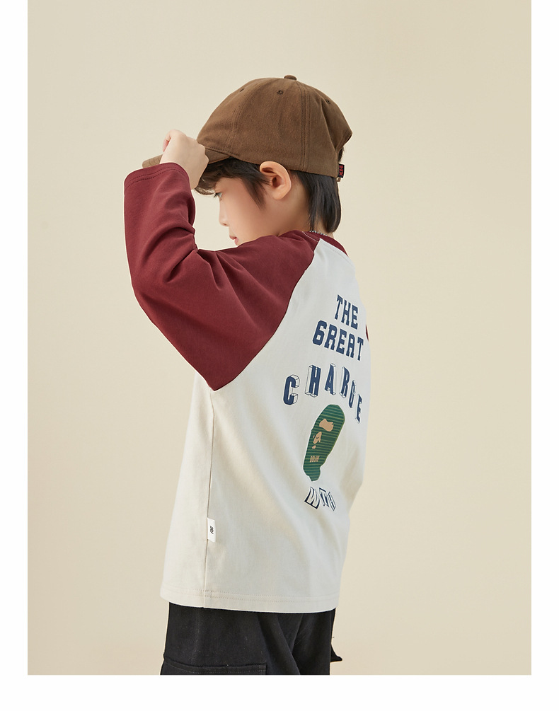 男童純棉插肩袖印花長袖T恤