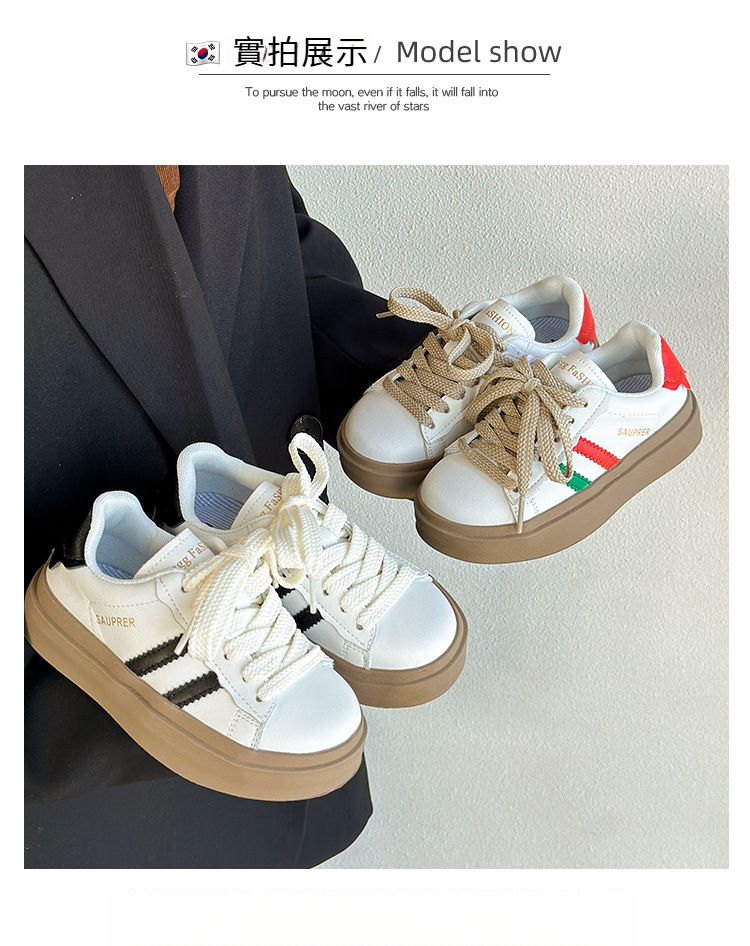 韓版兒童春秋低幫白色運動鞋